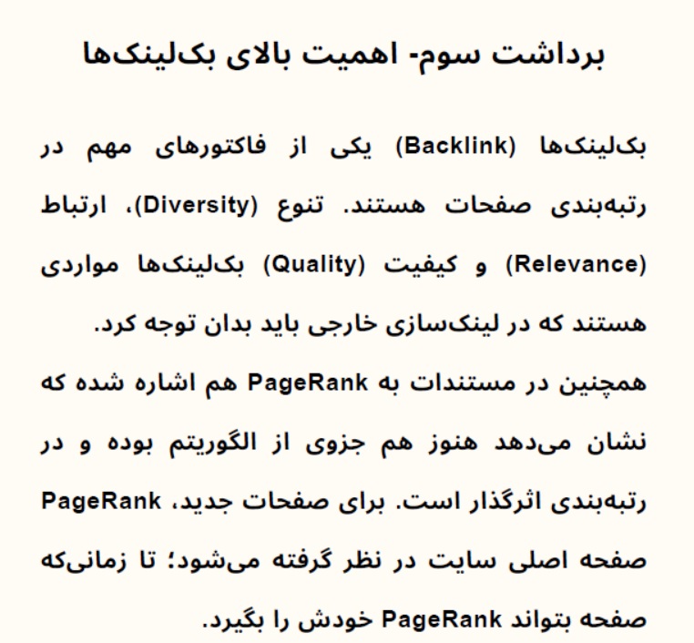 اخیرا اسنادی از گوگل در خصوص عوامل موثر بر سئو سایت ها و همچنین میزان رتبه بندی شون لو رفته که خود گوگل هم اونا رو تایید کرده، حال در این قسمت ۱۲ برداشت مهم رو براتون آماده کردیم که تقدیم حضورتون می کنیم.